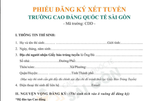 Trường Cao đẳng Quốc tế Sài Gòn tuyển sinh năm 2024 khối ngành hướng dẫn du lịch, ngành ngôn ngữ Anh, ngành ngôn ngữ Nhật, ngành ngôn ngữ Hàn, ngành ngôn ngữ Trung. Dưới đây là mẫu đăng ký xét tuyển cho sinh viên.